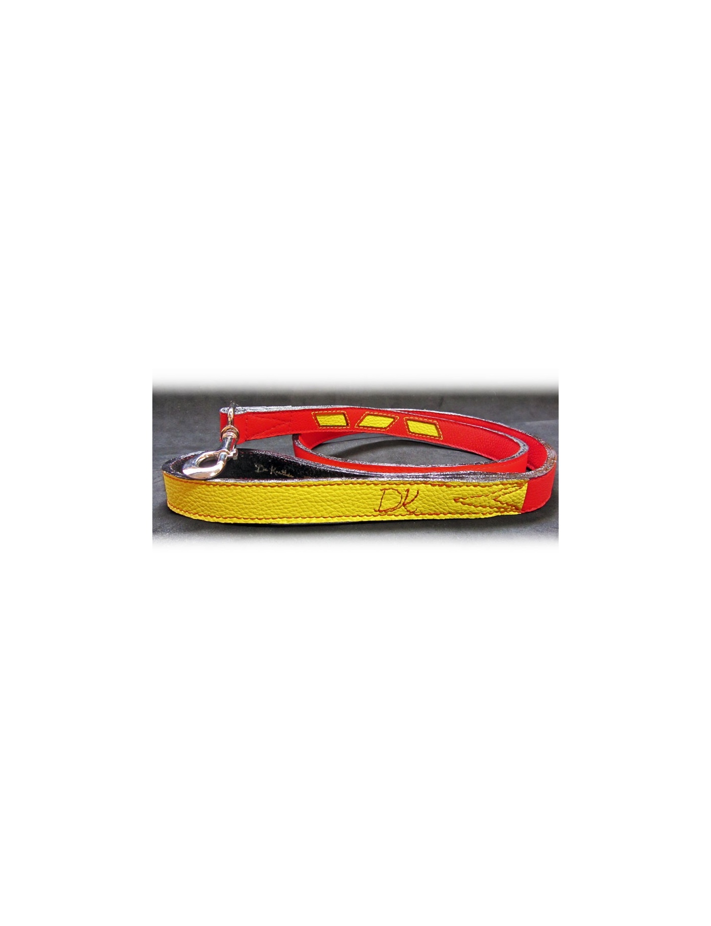 Let it be sadness or happiness, in love and friendship is room for both. This handmade red-yellow leather leash with a touch of love, will made your dog playful and happy.